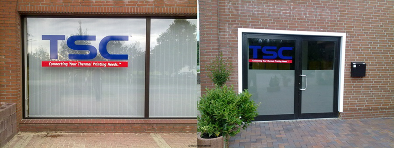 Beschriftung einschl. Sichtschutz mit Milchglasfolie |